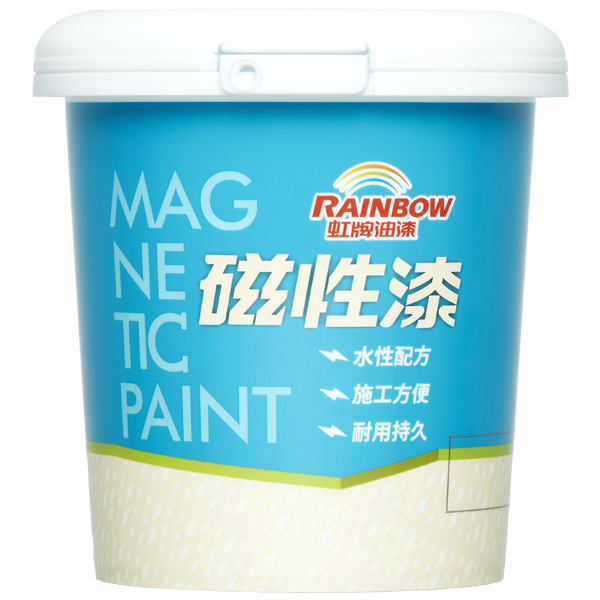 虹牌水性磁性漆是專為生活創意而生的產品,使用獨特水性低氣味樹脂配方,搭配高科技的磁感性原料精製而成,不會生鏽,塗刷後就像在平凡的牆面賦予萬磁王的能力!瞬間變成磁性牆!家中的小紙條、帳單、相片……等,隨手吸附在牆面上,什麼都不怕忘記了!且施工完畢待乾燥後,直接塗刷彩虹屋電腦調色乳膠漆或水泥漆,聰明搭配色彩!再給你另外一個搭配小撇步:在乳膠漆之後再塗刷虹牌水性黑板漆或水性透明白板漆,牆面一次滿足了可書寫、吸附磁鐵以及配色的新世代多工牆面,打造最具自我風格的創意牆面空間!