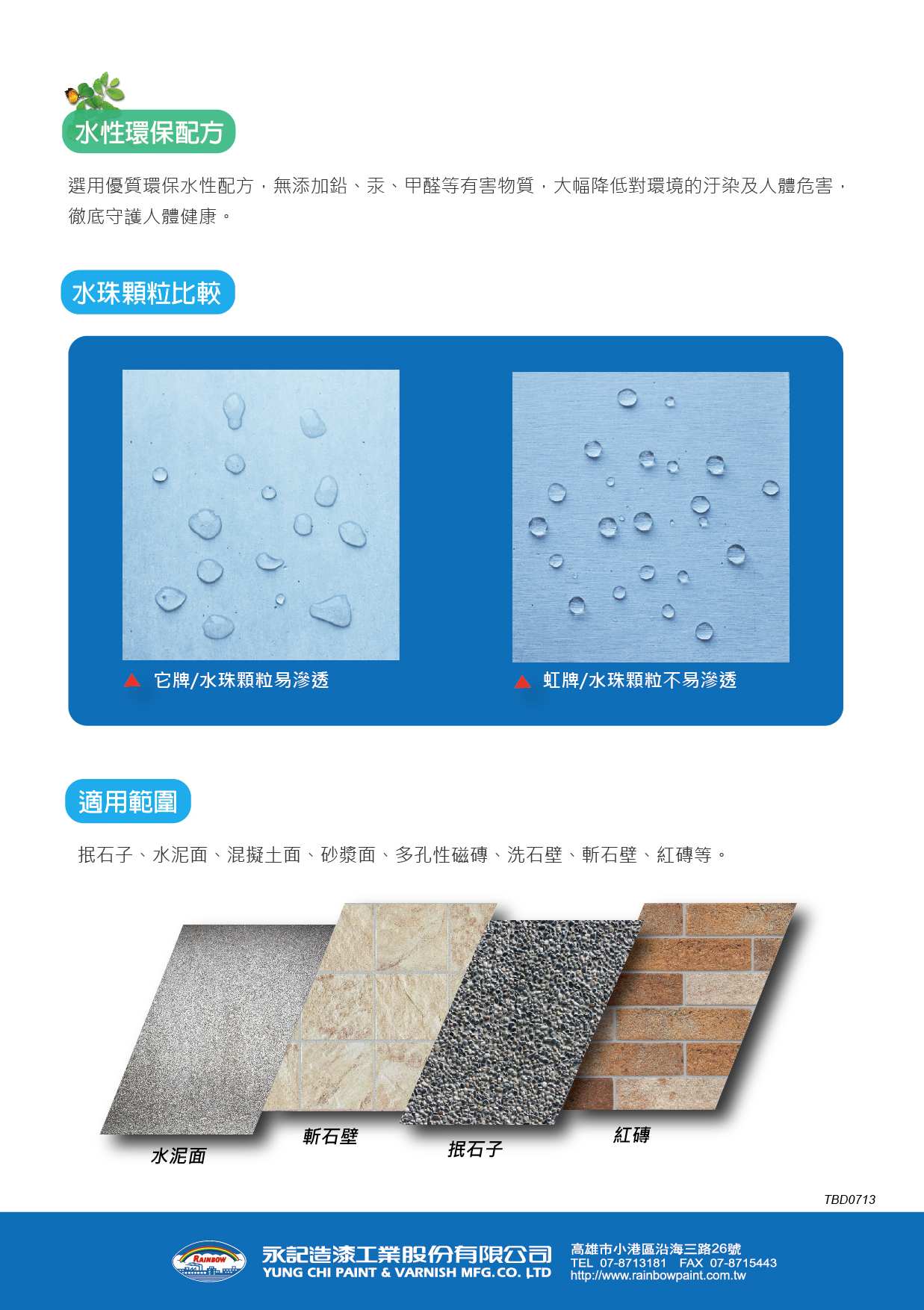 - 施工後2小時內避免淋雨,以免影響產品效果