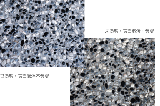 透明無膜不黃變,不改變建築物表面質感,高耐候性使漆膜能經的起瞬息萬變的氣候考驗,會因為氣候影響而加速石材老化損壞,能有效提升使用年限。施工簡易,使用便利。
